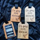 Todas as nossas etiquetas de bagagem são cuidadosamente lixadas antes de passarmos o desenho a lápis na peça.